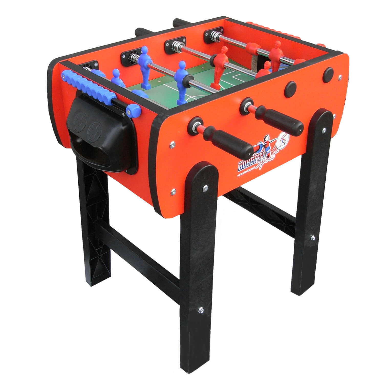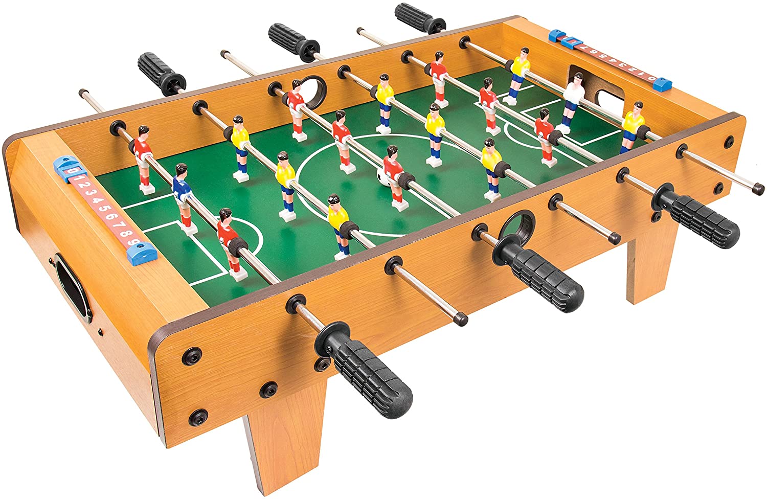 The Roby Colour Mini Football Table offers something unique, aimed at children between 3 and 6. It stands 75cm off the ground, has a good-sized playing field featuring 3 players per side, and packs a bunch of safety features including telescopic safety rods and an optional plexiglass cover to avoid little hands being caught and injured in the play space. The overall build quality of the table is exceptional, valuing aesthetics and practicality as well as its most standout feature of safety. However, weighing in at 17.5kg and being the most expensive table on this list, this premium kids foosball table will be a special buy for those who want extra peace of mind.