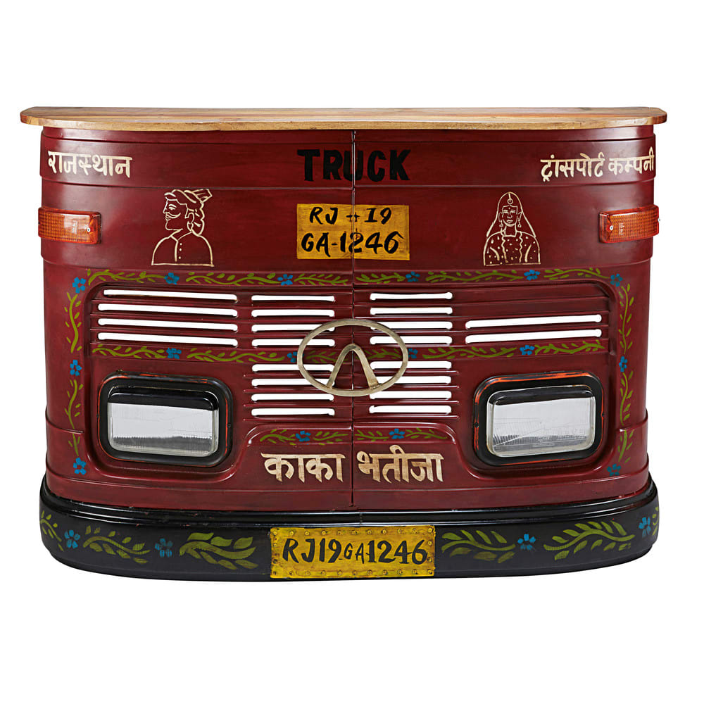 If you’re looking for 'wow factor' then look no further. This home bar in the style of a truck front will transport you and your guests all the way to exotic Goa, India. It comes complete with two surfaces, a stylish bottle rack, and plenty of storage space in behind. This bar is enough to light up any party! It's made from metal as well as recycled wood.