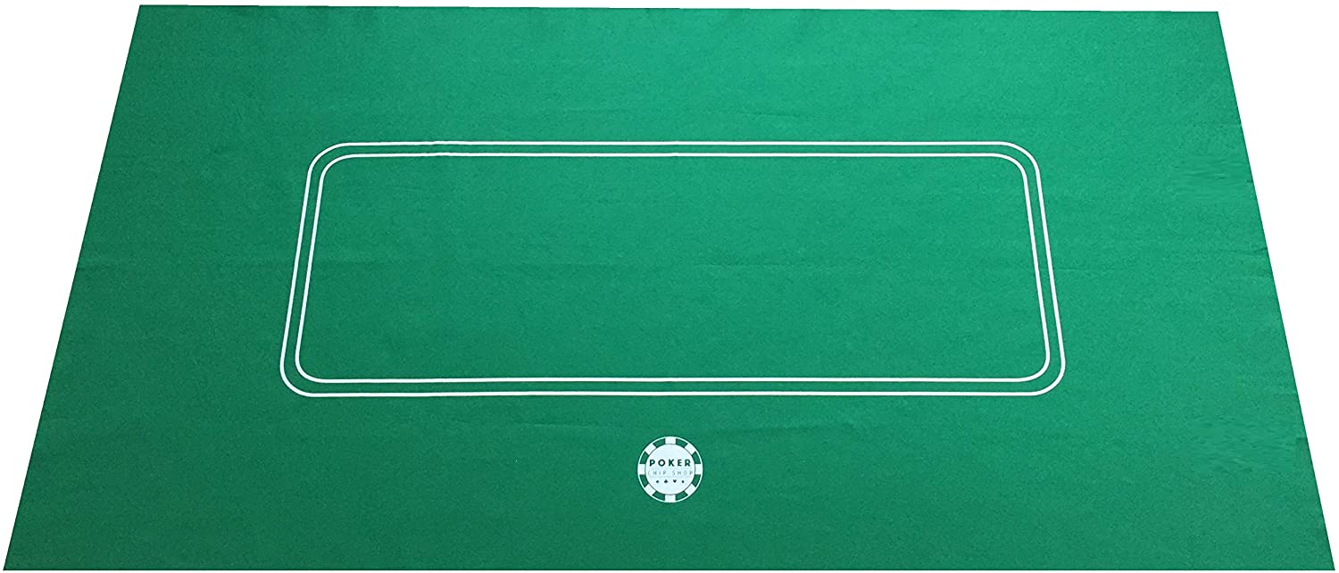 Poker felts are basic poker layouts on a piece of cloth that you lay on the table to add some structure to your game. They are cheap but generally low quality and will likely deteriorate after a few uses. They can be folded up and stored away easily like a small table cloth.